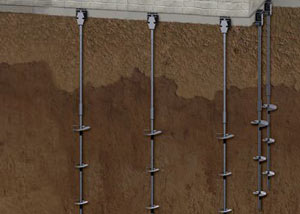 The distinctive appearance of a helical pier explains how it works to solve foundation settlement problems.