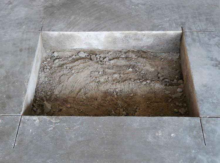 Next, a plastic liner is placed on the ground around each slab cutout made in the previous step.