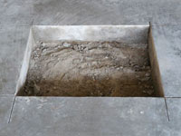 In cases where street creep has damaged foundation walls, wall anchors can be installed to stabilize and restore these walls. A soil access point is required at each wall anchor location. Using a concrete saw, a technician will create a square cutout in the garage slab at each soil access point.