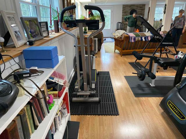 workout room and TV room in basement